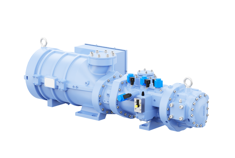 雪人SRS系列半封闭式单机双级螺杆压缩机共4大系列16种型号,其设计理念先进,制造标准高,广泛应用于冷链物流、低温冷藏及食品速冻等领域,且其设计倾角>30°,可用于船舶制冷等领域。SRS系列半封闭式单机双级螺杆压缩机适用于R717、R22及R507A等制冷剂,排量范围141~1270m3/h(2960rpm)